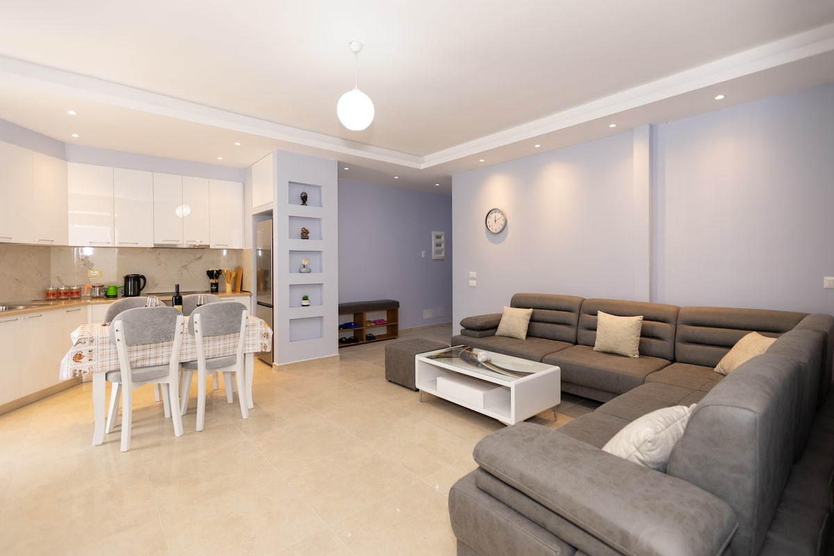 Ifulethi elivulekile elingu-1+1 enkabeni ye-Lungomare Promenade yase-Vlora elinezindawo ezinhle zasolwandle. Ihlalisa ngokunethezeka izivakashi ezingaba ngu-4 ezinekamelo lokulala elithokomele nendawo yokuhlala ekhanyayo. Ikhishi elinakho konke nendawo yokuphumula elungele imindeni noma amaqembu. Izitebhisi ezisuka ebhishi, amathilomu, nezindawo zokudlela. Jabulela okungcono kakhulu kwempilo yasolwandle yase-Vlora khona kanye emnyango wakho!