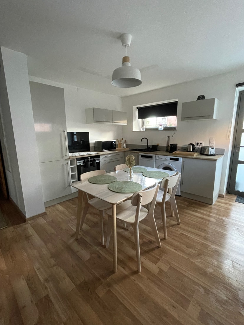INCAZELO efulethini elithokomele elingu-42 m²lalungiswa ngo-2017. Ikhishi elinakho konke . Igumbi lokulala- umbhede ongu-1 140 X 190 cm. Iwodilophu. Igumbi lokuphumula elinosofa oguquguqukayo wezinto zombhede ezengeziwe: 140 X 190 cm. I-Flat-screen TV Imidlalo yebhodi. Indlu yokugezela yesimanje eneshawa, umshini wokuwasha, umshini wokomisa izinwele. Indlu yangasese ehlukile. Indawo yokupaka yamahhala engeyona eyimfihlo