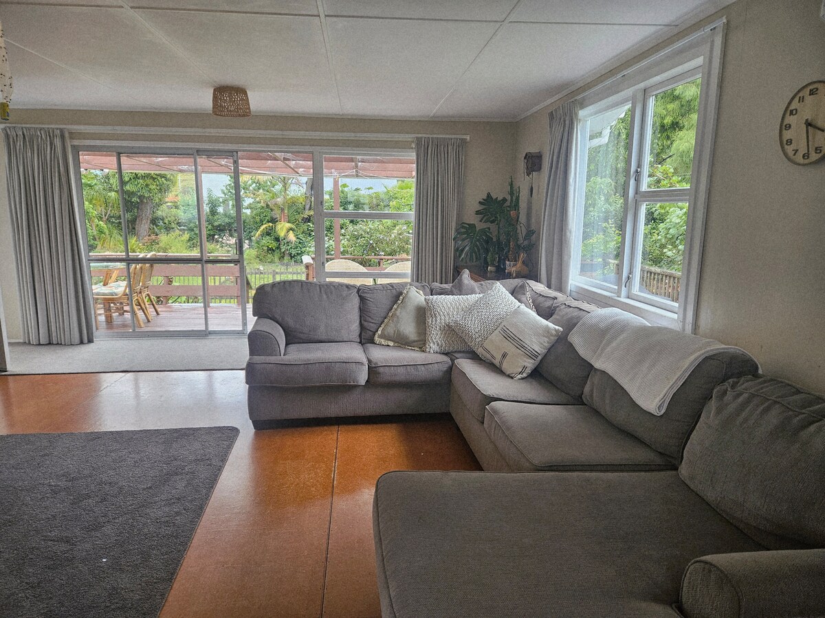 Jabulela indawo ethulile. Lalela zonke izinyoni zomdabu, bhukuda endaweni yokubhukuda, thatha uhambo endaweni yethu ethandekayo, noma umane uphumule endlwaneni evulekile enesiphuzo. Ngaphakathi, yenyuka izitebhisi ezivunguzayo uye ekamelweni elithokomele le-mezzanine (sicela uqaphele ukuthi liphansi lapho). Izitebhisi eziyingqayizivele zivela endaweni endala yokubuka izinkanyezi ku-Titirangi (i-maunga/entabeni yendawo)! Umbhede owusofa endaweni yokuphumula ungalala 2. Alikho ikhishi, kodwa kukhona ikhishi eline-microwave, i-toaster neketela.