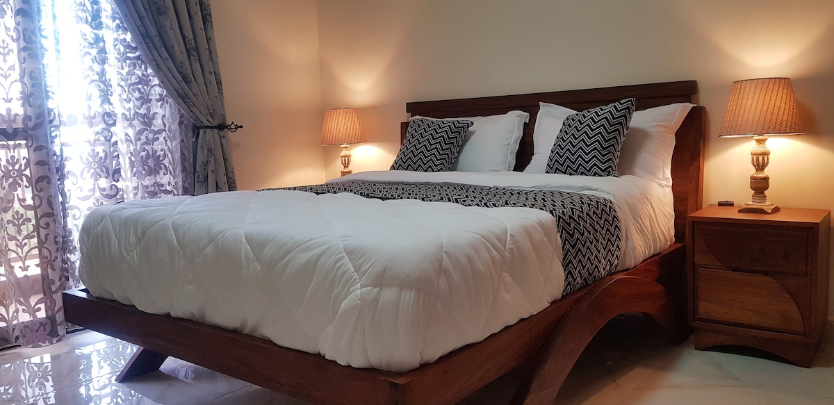 Leli Fulethi Le-Aesthetic One Bedroom lise-Naalya Estate eduze ne-Quality Supermarket. Kuyimizuzu embalwa ushayela uxhumano olusenyakatho olukuholela Esikhumulweni Sezindiza nge-Express Highway futhi eduze ne-Acacia Mall, izindawo zokudlela ezinhle nezinkantini eziseduze. Kukhona nezinye izindlela eziningana eziya enkabeni yedolobha. Amasevisi athi; - Zonke izinto zasekhishini isib. Umpheki welayisi, Umshini wekhofi, i-Blender - I-WI-FI YEJUBANE ELISHESHAYO - I-smart tv engu-55inch ye-Samsung - Ibha yomsindo ye-Samsung - Umshini Wokuwasha