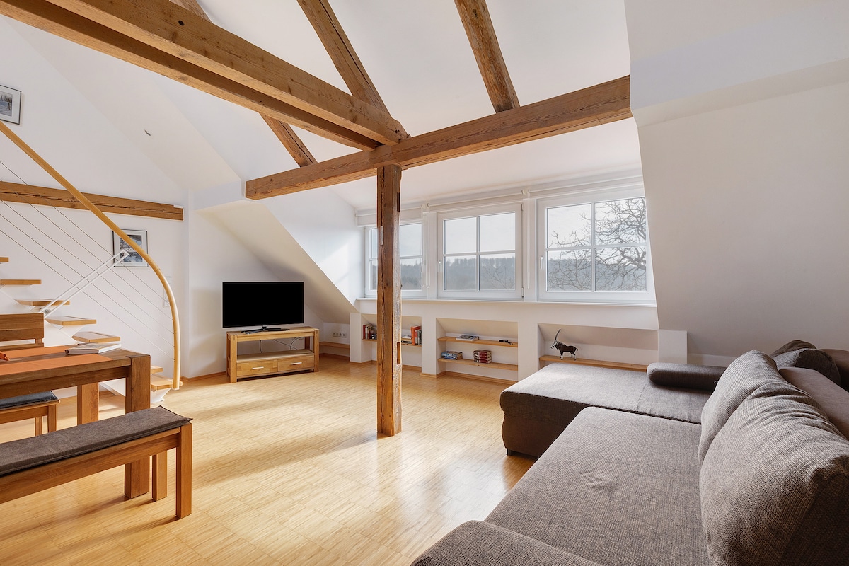 Siyakwamukela e-Park Lodge enkabeni ye-Krumbach nepaki layo ledolobha eliyingqayizivele! Le ndlu esanda kulungiswa itholakala maphakathi nepaki ledolobha eliphakathi nendawo futhi ihlaba umxhwele ngendawo yayo yedolobha kanye nepaki elingamamitha-skwele angaba ngu-34,000, khona kanye emnyango wakho. Yiba nogqozi ngombono oqondile wasemaphandleni! Uhambo olufushane phakathi nenkaba yedolobha kanye nendawo yabahamba ngezinyawo nakho kwenza izinhliziyo zisheshe.