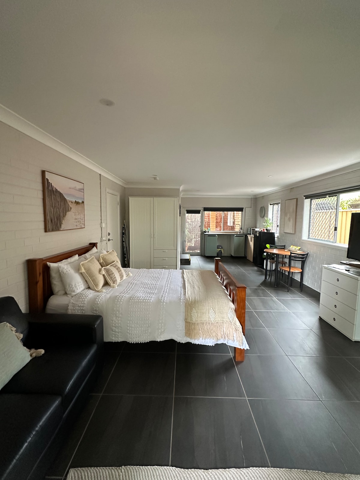 Iyunithi enendawo yokugezela nekhishi le-galley esitezi esiphansi sekhaya elikhulu lokuhlala. Indawo yokupaka engaphandle komgwaqo yemoto eyodwa. Hlukanisa ukufinyelela kwezivakashi, indawo yangaphandle engaphansi enendawo ehambisanayo, ikhishi eligcwele nazo zonke izitsha zokufaka kanye nomshini wekhofi. Istudiyo sisanda kuba nezilungiso ngo-March 2025 esinegumbi lokugezela elisha ngokuphelele, izinto zikagesi ezibuyekeziwe kanye naphansi okusha. Kunendawo yangaphandle efihlekile ene-bbq.