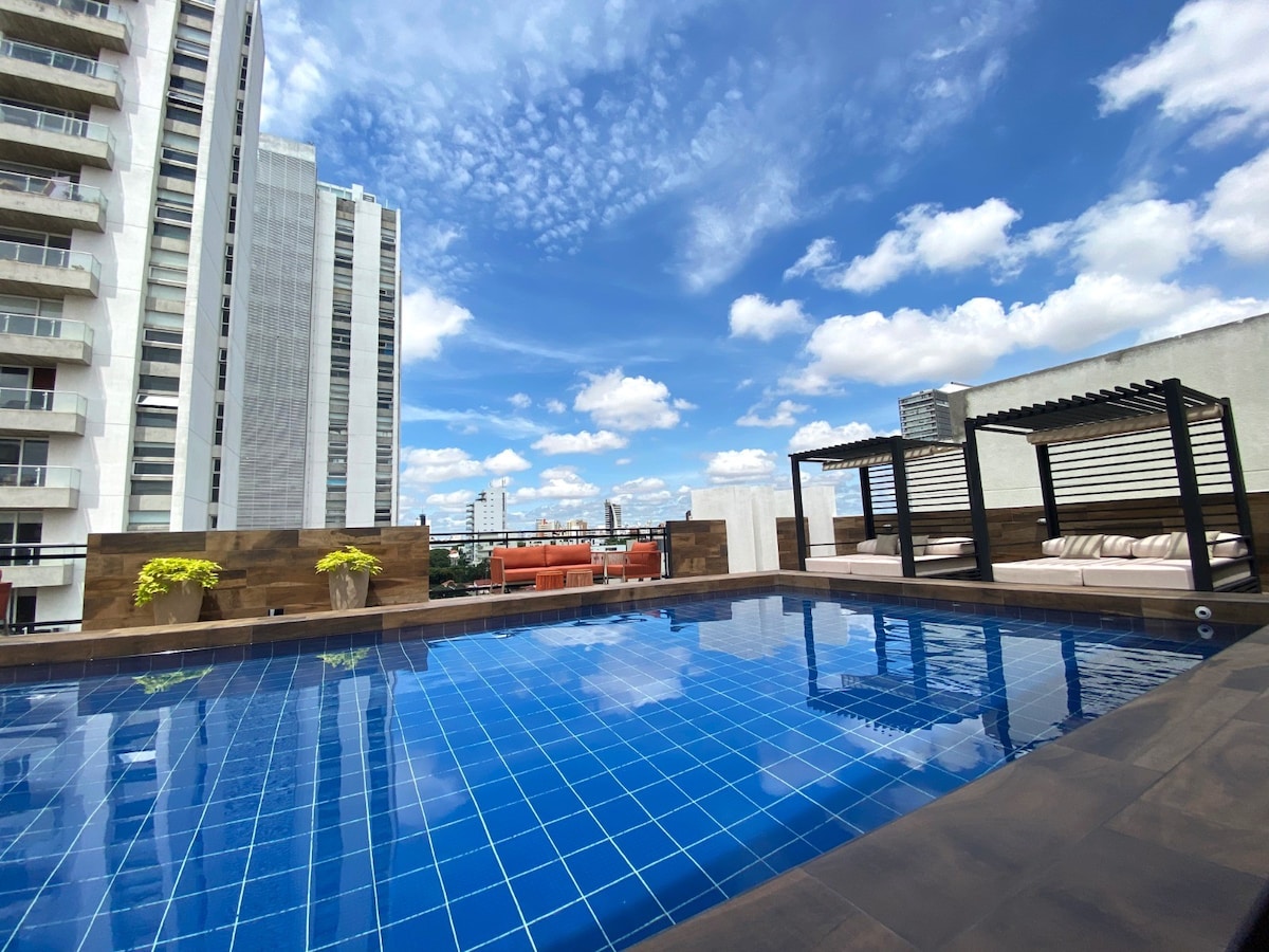 Suite de lujo en Green Tower – Santa Cruz Piso 22. Vive en el edificio más alto y exclusivo de la ciudad, en el piso 22, con vistas panorámicas a Manzana 40, el cordón ecológico y el Urubó. Disfruta de gastronomía de primer nivel en el mismo edificio, en Jardines de Asia, Caudilla, y el impresionante Sky bar, además acceso libre a la piscina, sauna, churrasqueras y el gimnasio Sport Motion. Un departamento nuevo! amoblado con piezas de alta gama, incluyendo sofá cama grande.