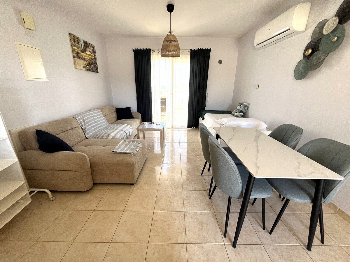 Ifulethi eliphambi kolwandle elinethezekile e-Protaras elinikeza ukunethezeka, isitayela, nokunethezeka. Hamba ngezinyawo uye emabhishi namasevisi; imizuzu ukusuka e-Protaras strip. Vula indawo yokuhlala, ikhishi, nendawo yokudlela enezindawo ezinhle zasolwandle. Igumbi lokuphumula linezihlalo ezithokomele, i-TV ebanzi, nendawo yokungena kuvulande. Amakamelo okulala amabili anemibhede emibili nezindawo zasolwandle; master with en suite. Indawo yokubhukuda yomphakathi, ama-sun lounger, nebhishi kuhamba nje. I-Wi-Fi enomoya opholile, enejubane eliphezulu. Indawo ekahle ebheke ulwandle enezindawo ezibabazekayo.
