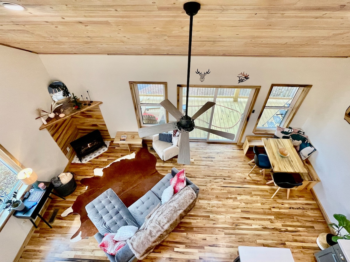 Indlu eyakhiwe ngamapulangwe enethezekile eyimfihlo, efanele izilwane ezifuywayo nomndeni esekugcineni kwepulazi elisebenzayo—umgwaqo wamamayela ambalwa ukusuka enkabeni yedolobha i-Waynesville. Isakhiwo esisha esakhiwe ngezandla ngumbungazi wakho esinamapulangwe esihlahla esidala esakhiwe kabusha ngaphambi komthethosisekelo. Jabulela ukuhamba epulazini okunokuthula, ukubuka izintaba, kanye nedekhi elivaliwe elingamamitha-skwele angu-1,000 (elimboziwe + elivulekile) elinagceke elibiyelwe elixhunyiwe. Ngaphakathi kuneshawa enkulu yokungena ngaphakathi kanye nobuhle obufudumele bama-Appalachian. Ama-e-bike ayatholakala ukuze uqashe ukuze uhambe kalula edolobheni nasemizileni. Phumula futhi uvuseleleke!