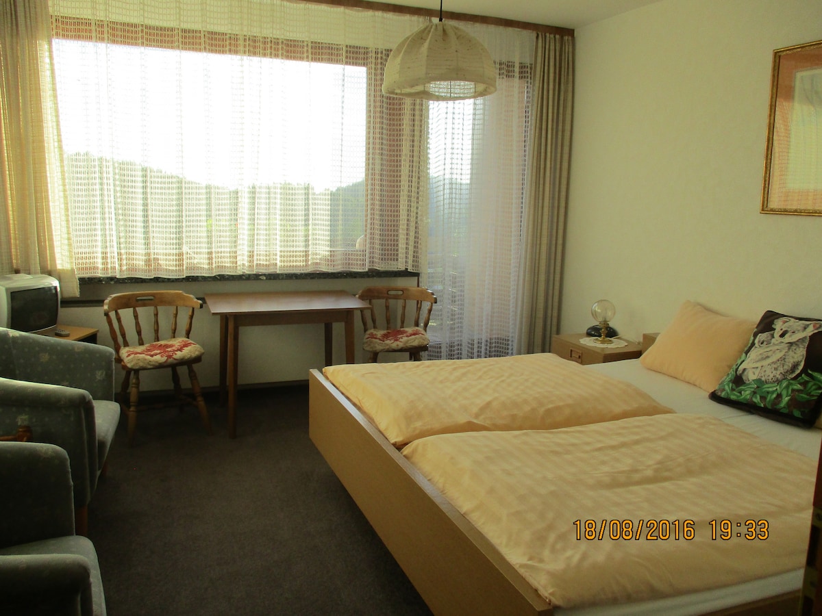 Siyakwamukela edolobheni elihle elisezintabeni lase-Lautenthal e-Upper Harz ! Ngeke ufune ukushiya le ndawo ebukekayo, ehlukile. Indlu yethu iyindlu yangaphambili yehlathi phezulu e-Bromberg, lapho ubheka khona uphahla lwendawo. Umgwaqo we-asphalt ogandayiwe nosulwe kahle uholela kithi ngokuqondile. Kusuka ngokuqondile endlini yethu kunehlathi elinemizila eminingi yokuqwala izintaba. Ibhokisi lombhede wasentwasahlobo 180x200, ifriji, umshini wokwenza ikhofi, i-microwave, iketela. Amagumbi angu-2.5 atholakala kithi kuphela