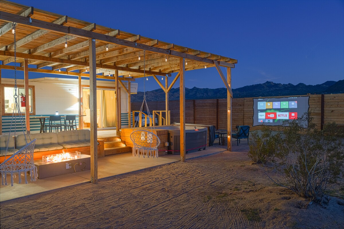 Okokuzithokozisa okuyingqayizivele nokungalibaleki kwasogwadule okunezindawo ezinhle ezisendaweni yokubhukuda enamanzi ashisayo kanye ne-spa yamanzi anosawoti *Jabulela ukushona kwelanga okubabazekayo nokubuka izinkanyezi ngomlilo ovulekile. *I-STARLINK WIFI *Umsebenzi Ohlukile & Igumbi lamabhayisikobho. *Thatha izintaba ezinhle ze-canyon uwedwa usuka emnyango wangaphambili uye eSand kuya eSnow National Monument. Le ndlu engama-acre angu-5 iphrayivethi, ithule futhi ithule phakathi futhi izungezwe amadwala amakhulu nezilwane zasendle egqumeni elibheke ogwadule amakhilomitha amaningi.