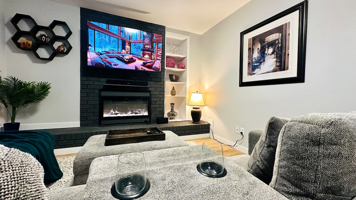 Itholakala emizuzwini engu-5 uhamba ngezinyawo uya esibhedlela i-Grey Nuns Hospital, i-Mill Woods Mall, i-Recreation Center kanye nezitolo zokudlela. Leli gumbi elingaphansi elisanda kulungiswa lifakwe indawo yokungena eyenzelwe izivakashi kuphela, indawo yokupaka, ikhishi eligcwele, nokuwasha izingubo ezihlanganyelwayo. Ngaphakathi ungaziphumula endaweni efudumele futhi eduduzayo enokufinyelela ku-Wifi ne-Netflix. Jabulela ubhavu, upheke ukudla kwakho, uthokomale ngaphandle ngasemgodini womlilo otholakala unyaka wonke. Ikamelo lokulala likhanya futhi livulekile futhi linendawo yokuhamba ekhabetheni, elilungele ukuhlala isikhathi eside.