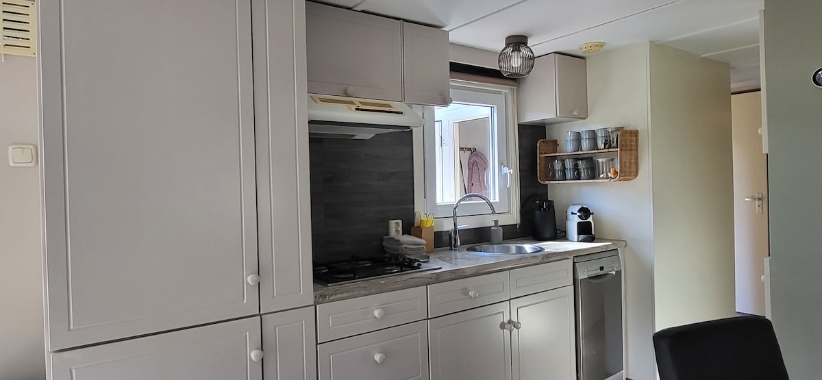 Siqashisa ngenjabulo i-chalet yethu entsha, enhle, yabantu abangu-4, etholakala endaweni ethule, enelanga, enkulu (300m) eyimfihlo enkundleni yokukhempa yase-Reeenwissel. Itholakala eDrents Friese Wold enhle. Sifake ifenisha endlini yethu yezinkuni ngendlela ethokomele ngangokunokwenzeka ukuze ukwazi ukujabulela iholide lakho noma impelasonto ngaphandle kokukhathazeka. Kusukela lapha, ukuhamba ngezinyawo, ukuhamba ngebhayisikili, i-MTB nemizila yamahhashi iqala ngokushesha. Indawo yokukhempa inendawo yokubhukuda, ukuzijabulisa, izindawo zokudlala ezingaphakathi nezangaphandle, i-brasserie nesitolo. I-TT Assen iseduze!
