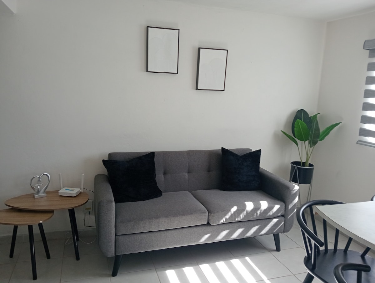 I-Virtual Tour iyatholakala ngokuskena ikhodi endaweni yesithombe - Indawo yokupaka ephrayivethi - Iminyango enokhiye wokuvikeleka - Qedela ikhishi ne-bar, ifriji, isitofu, umshini wekhofi, i-microwave, izitsha eziphelele - Ikamelo lokulala eliyi-1 eline-wardrobe, ideski, umbhede omkhulu nezingubo zokulala - Indlu yangasese enobhavu eyodwa, i-shampoo nensipho, amathawula - Umbhede owodwa wosofa ne-Smart TV, i-Netflix. - Ibhulokhi elilodwa ukusuka e-Independence Avenue, imizuzu engu-5 ukusuka e-Llujo nemizuzu engu-10 ukusuka e-Justo Sierra Avenue - Izimakethe, izindawo zokudlela, izindawo zokwenza utshwala