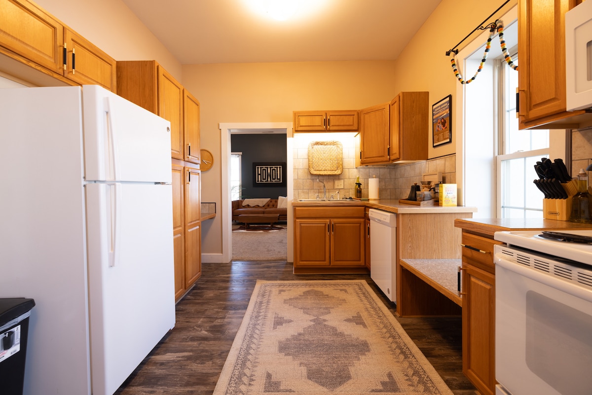 Leli fulethi elihle kakhulu eliphezulu phezu kwesitolo sezipho linamakamelo amabili kanye nekhishi eligcwele ukuze izivakashi zijabulele ukulungiselela ukudla. Uvulande uyindawo ekahle kakhulu yokuhlala futhi ujabulele inkomishi yekhofi futhi ujabulele umoya wedolobha elincane! Ukuhlobisa kumnandi njengoba ikamelo lokulala elilodwa lilula kakhulu futhi elinye lisekelwe ku-Wyoming! Amabhizinisi amahle wonke asebangeni lokuhamba ngezinyawo! Uzoyithanda into yokokuzithokozisa edolobheni elincane edolobheni! Leli fulethi linezitebhisi zokuya kulo. Sinikeza izaphulelo ekuhlaleni kwesikhathi eside