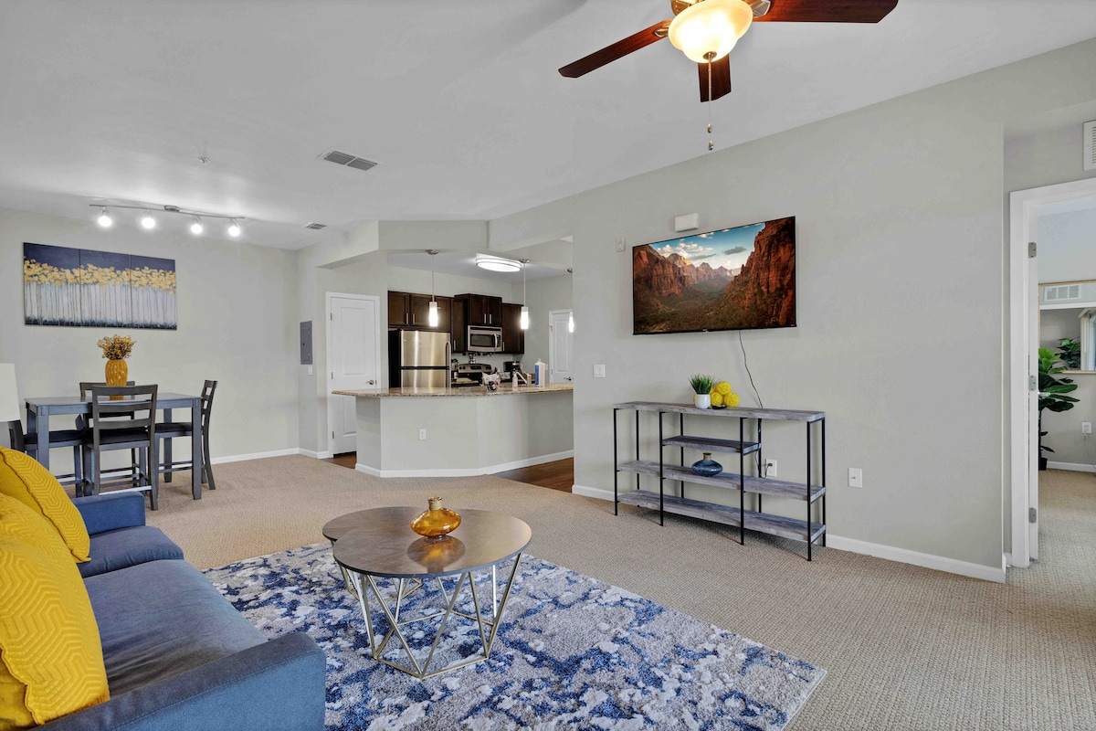 Itholakala e-Windermere, i-Waterfront Retreat yethu ihlanganisa ukuzola kwedolobha nokusondelana ne-Orlando's buzz. Le ndawo yokuvakasha ethulile inikeza izindawo ezinokuthula ezingasechibini ezizungeze indlu, i-balcony ephrayivethi, ukunethezeka kwesimanje ekamelweni lokulala elithokomele eline-smart TV, nekhishi elinomshini wokuwasha izitsha wokusebenzisa izinto zakho zokupheka. Jabulela izinto ezengeziwe ezinjengelondolo elingaphakathi kweyunithi nokufinyelela okukhethekile endaweni yokubhukuda enesitayela se-resort nendawo yokuzivocavoca. Ilungele labo abafuna indawo yokuvakasha enokuthula eduze nezindawo ezihamba phambili zedolobha.