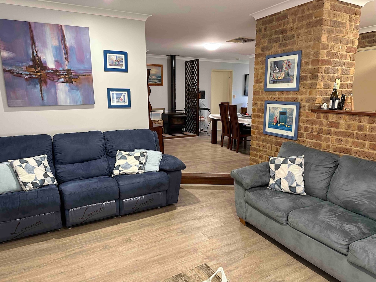 Vula umnyango wokuthile okukhethekile – indlu yethu ifakwe kahle futhi ihlotshiswe ukuze yenze enye yezindlu eziyingqayizivele kakhulu endaweni. Indawo ezolile, ethokomele nekhanyayo yokuhamba ngezinyawo okufushane kwemizuzu engu-10 ukusuka e-Dalyellup Beach. Beka embhedeni wakho futhi ulalele amagagasi. Iwayini lendawo lamahhala, I-WIFI, i-Netflix, i-Ducted reverse cycle heating/cooling, amasevisi amaningi (amathoyizi/izincwadi, i-pantry enesitokwe) yomndeni wonke! Ilala 6. Wonke amalineni ombhede namathawula okugeza/amacansi anikeziwe.