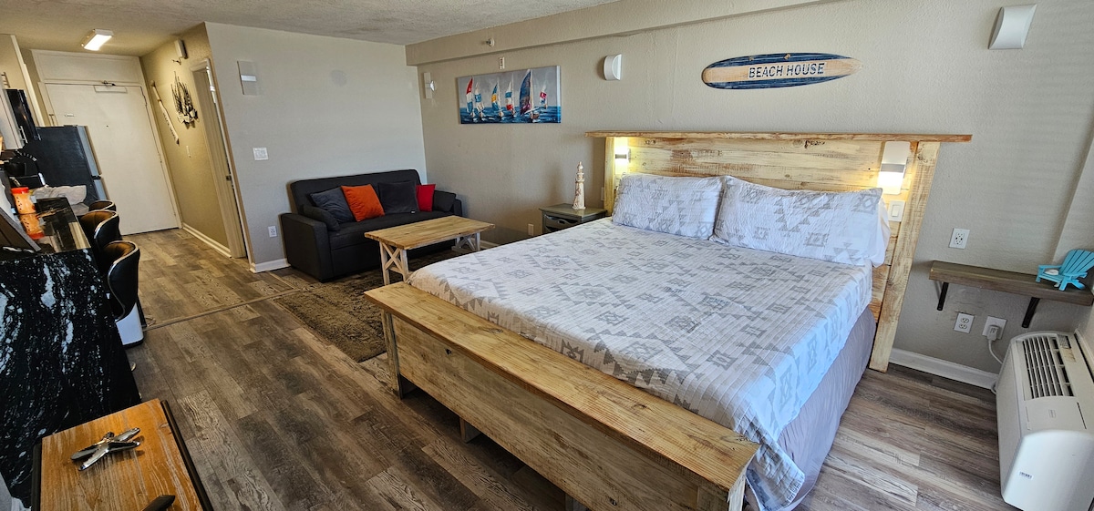 ONE bedroom condo-tel right on the beach! Has a king bed in the bedroom and a queen size convertible sofa in living room. Units are privately owned and run by an HOA. We have made many improvements to this prime location over the past few years. Our building is smack dab in the center of everything. You will not be disappointed! I’d love to host you, your family, or your sweetheart. Please feel free to message me with any questions. Hope to see you soon here at beautiful Daytona 🏖️beach!