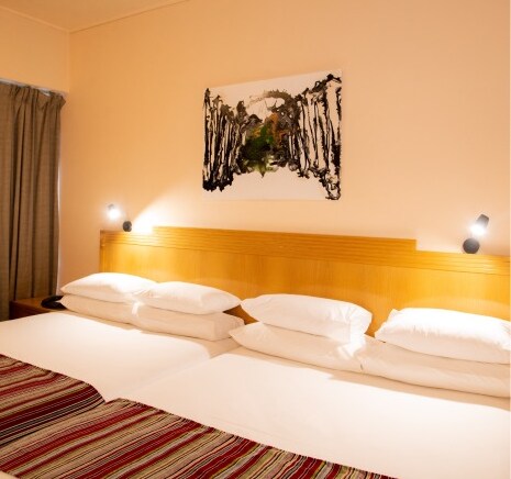 Igumbi 5 liseduze nendawo yokwamukela izivakashi, indawo yokudlela nendawo yokuphumula. Ligumbi lokulala elingasendlini elingahlelwa ngombhede olingana nenkosi noma imibhede emibili enosayizi olala umuntu oyedwa. Lokhu kulungele abantu abashadile abahamba ndawonye, abangane ababili noma amalungu omndeni afisa ukwabelana ngekamelo lokulala.