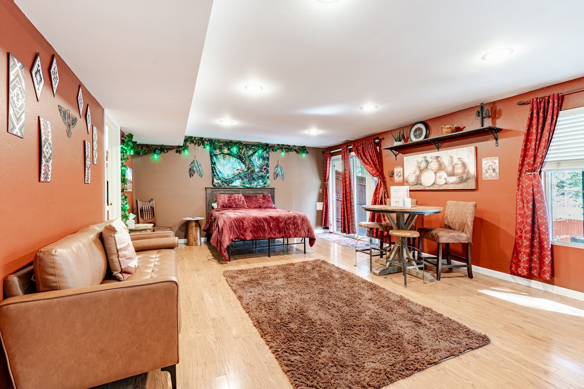 Iphiko lezivakashi zakho zangasese lekhaya lethu libheke empumalanga, namafasitela aya ekuphumeni kwelanga nokushona kwelanga okubheke amatshe abomvu ase-Sedona. Le-oasis esegqumeni inomsele omncane osentwasahlobo, futhi inesiziba se-koi esinokuthula. Jabulela izinkanyezi kubhavu wamanzi ashisayo! Ibha yesidlo sasekuseni ihlanganisa usinki, i-skillet kagesi, ifriji elincane, uhhavini we-toaster, i-microwave, i-toaster, ikhofi netiye. Thatha isidlo edolobheni kanye nebhodlela lewayini egumbini lokunambitha lendawo, futhi udle ngokubuka kwakho i-patio esezingeni lomhlaba.