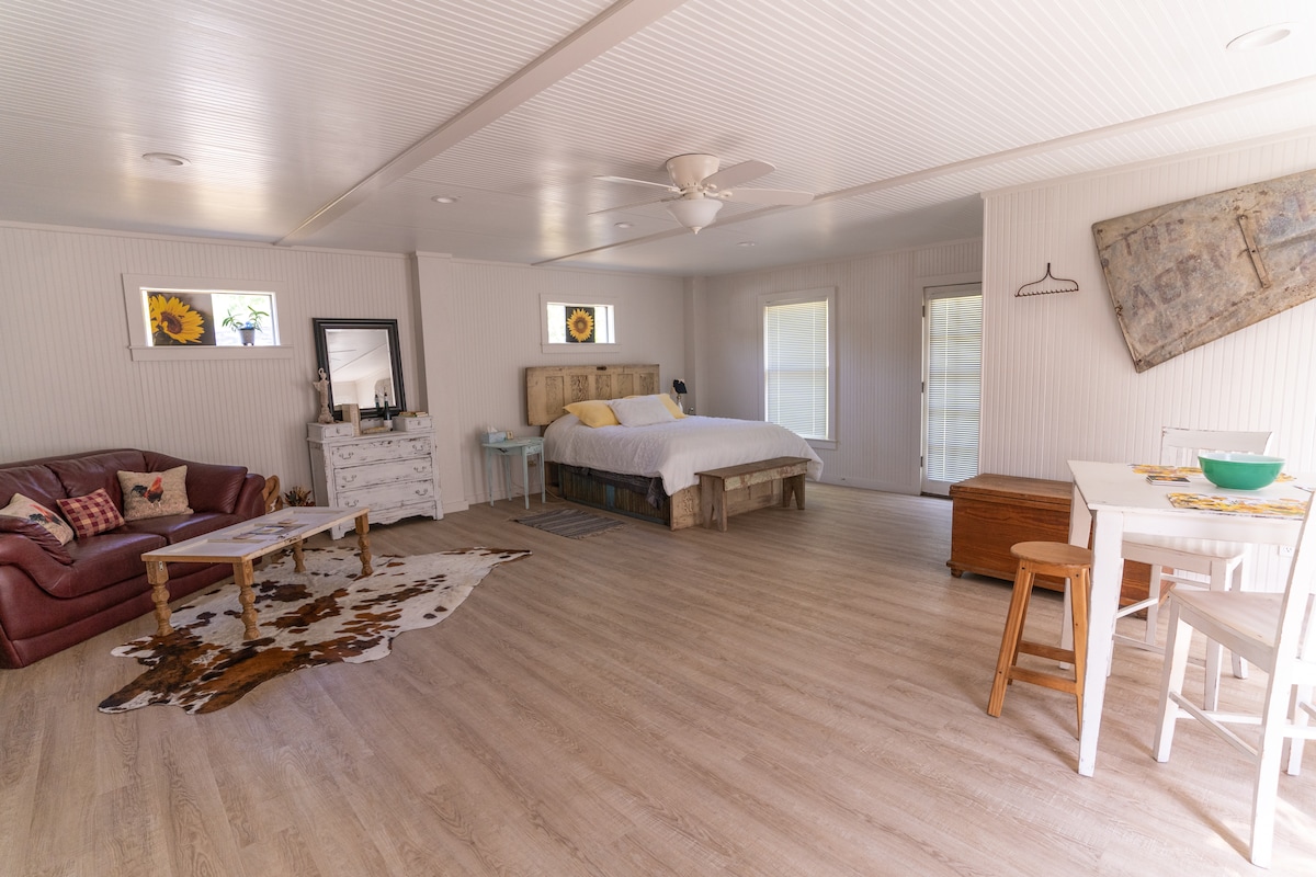 Tucked just behind our home, this thoughtfully styled open studio cottage offers a cozy, elevated stay in the heart of Shiner. Ideal for a romantic escape or a quiet work retreat with Wi-Fi. Walk to historic downtown, Welhausen Park, and the Spoetzl Brewery. Simple, warm, and intentionally comfortable—your laid-back luxury hideaway in the “cleanest little city in Texas.”