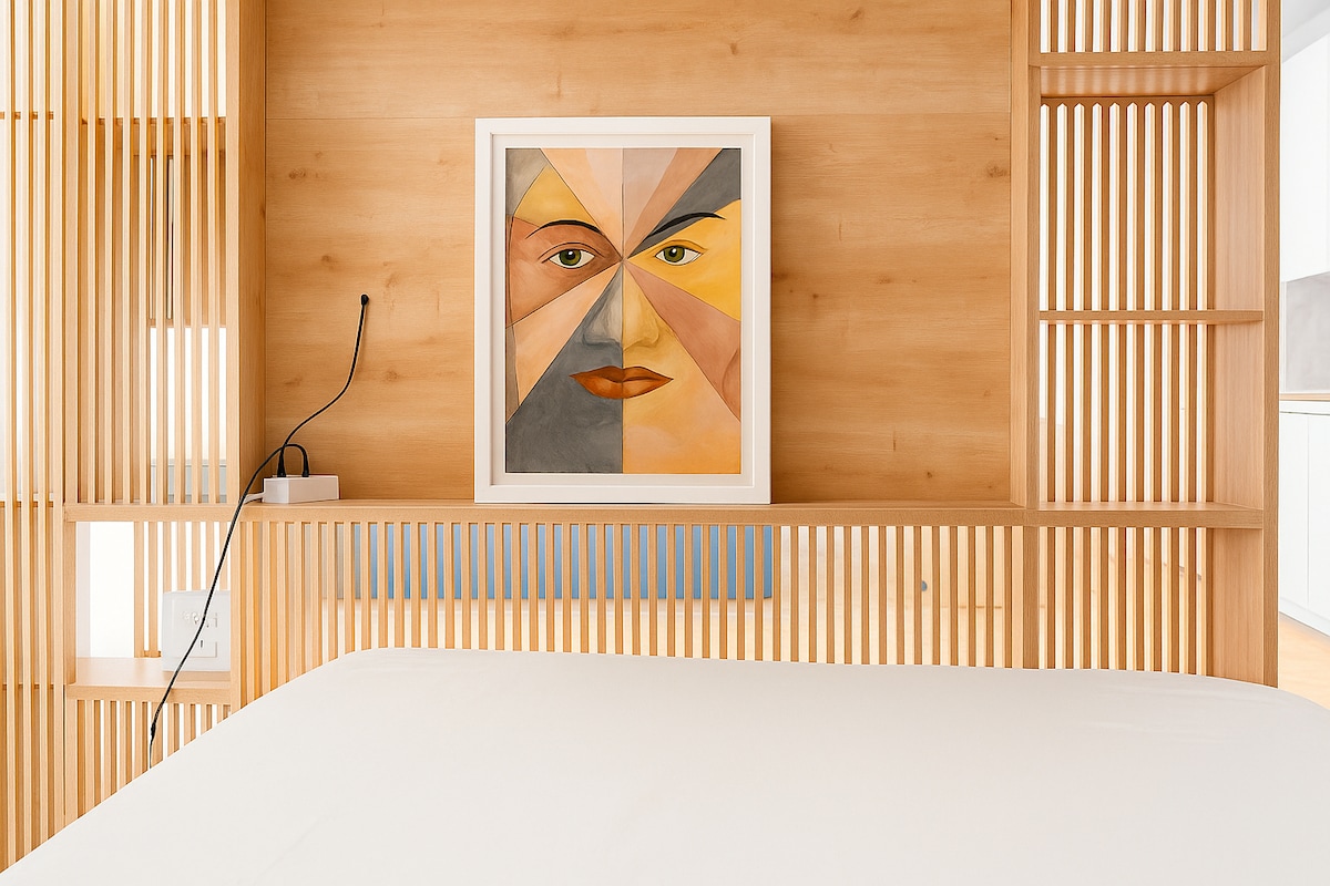 Step into a world of sophistication and artistry, where Parisian style meets contemporary luxury. Adorned with stylish mouldings, elegant furnishings, and natural plants, this apartment is a haven of elegance and charm. Lose yourself in the beauty of forest-themed mural, adding a touch of enchantment to the space. Whether you're curled up with a book in the cozy seating area or indulging in a glass of wine on the balcony, every moment is imbued with an air of refinement and grace.