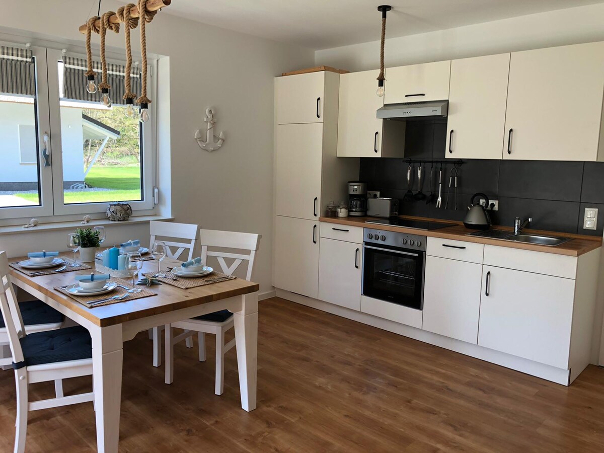 Endlini enkulu endaweni ebheke eningizimu, ifulethi lisendaweni ephakeme ngokuqondile ogwini oluphakeme lwe-Szczecin Lagoon. Ifulethi lisesitezi esiphezulu. Kusukela ku-terrace enkulu unemibono emihle ye-Szczecin Lagoon! Ifenisha enambithekayo kakhulu enothando oluningi lwemininingwane. Esigabeni se-Sauna- ukufaneleka- ukubhucungwa- amakamelo avamile, igumbi lokudlala lezingane ezincane, amabhilidi, ithenisi yetafula. I-Haffterrasse eya e-Chill, indawo ye-BBQ, indawo yokudlala yezingane nokunye okuningi.. Kufinyeleleka ngekheshi.